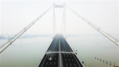 4月2日无人机拍摄的南沙大桥。 当日,作为粤港澳大湾区内又一条重要过江通道的南沙大桥正式通车。南沙大桥全长12.89公里,双向八车道,设计行车速度为100公里每小时,大桥开通后可极大缓解珠江口东西两岸的交通压力。新华社记者 梁旭 摄