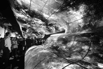 1月8日,2019CES(美国消费电子展)在拉斯维加斯举行。LG用260块OLED电视屏拼接成一个曲面巨幕,循环播放高清自然风光大片。 东方IC 供图