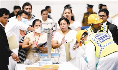 4月1日,在斯里兰卡首都科伦坡市郊,执法人员为即将销毁的可卡因称重。