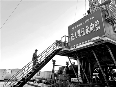 大庆油田1205钻井队工人走上井架作业(4月2日摄)。 建馆13年、累计接待参观者近一千万人次的铁人王进喜纪念馆,4月4日又一次迎来为大庆油田60年开发建设而奋战的工人和群众。清明节前夕,他们从四面八方赶来,有的相互搀扶,有的带着孩童,共同缅怀王进喜。 新华社记者 闫睿 摄