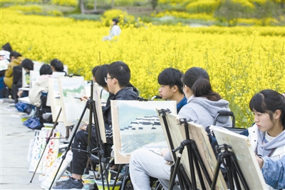 4月2日,不少学生到黟县西递古村落写生创作。 新华社 吴孙民 摄