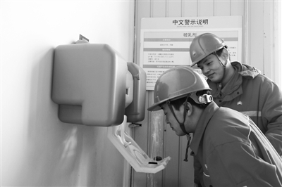 3月22日,冀东油田南堡作业区采油一区员工在巡检后,纷纷体验新安装的紧急洗眼器。当发生意外伤害事故时,可以使用该设备快速喷淋、冲洗眼睛,把伤害程度减轻到最低限度。