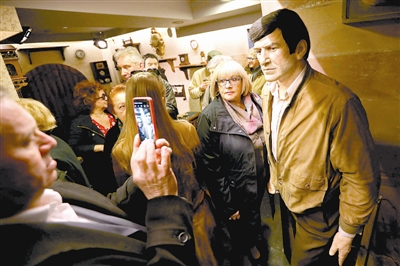 4月6日,在波黑首都萨拉热窝,参观者在《瓦尔特保卫萨拉热窝》博物馆与电影人物蜡像合影。