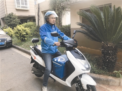 4月9日下午5点,苏军波正在送餐路上。 本报记者 黄榆 摄