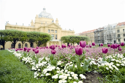 近日,克罗地亚首都萨格勒布春意盎然,市中心的多处广场、公园鲜花盛开。