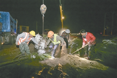 4月9日20时,工人们仍在卸载树苗。“千年秀林”工程分春、秋两季植树,每季施工期只有40天左右。为了赶进度、确保成活率,工人们经常加班。