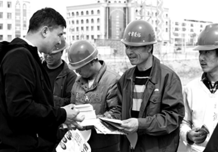活动中,该县以“提高农民工法制意识、促进农民工社会融合”为主题,进企业、进工地向农民工和用工单位发放和宣讲劳动法律法规知识,并检查企业与农民工签订的劳动合同、工资集体合同等情况。 高宏善 摄