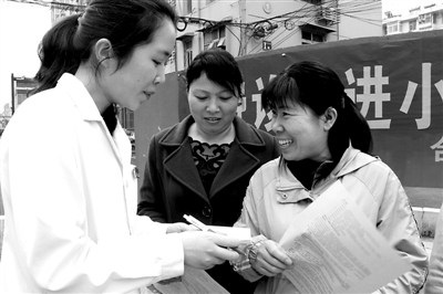 4月11日,合肥市瑶海区铜陵路街道合浦北村社区组织医疗志愿者来到辖区化工站小区,开展常见病义诊和健康咨询活动。志愿者们为小区居民进行了多项检查,并详细讲解了疾病预防、保健、合理用药等相关的知识。本报记者 陈华 本报通讯员 吴兰保 摄