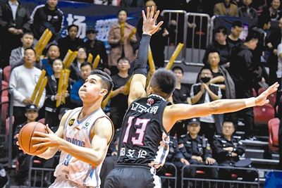 4月16日,在2018-2019赛季中国男子篮球职业联赛(CBA)半决赛第四回合比赛中,新疆广汇汽车队主场以107比81战胜辽宁本钢队,总比分战成3比1。新华社记者 胡虎虎 摄