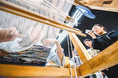 4月16日,由天津市规划展览馆和天津工业大学联合举办的“京津冀纺织类非物质文化遗产展”在天津举行。图为缂丝织造技艺展示。中新社记者 佟郁 摄