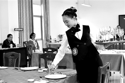 4月16日,在湖北省宜昌市秭归县职业教育中心,参赛选手在参加中餐摆台比赛。当日,由宜昌市教育局举办的2019年中等职业教育学生职业技能大赛举行,来自中等职业院校的12支代表队、200多名选手参加比赛。王辉富 向长征 摄