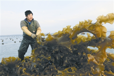 “荣成真是一块宝地,养了海带后一年四季都有活干,每年最少能收入十几万元,我们一家四口都在这定居了,海带就是我们的宝啊!”手捧着新鲜肥厚的海带,养殖户方云礼爽朗地笑着。