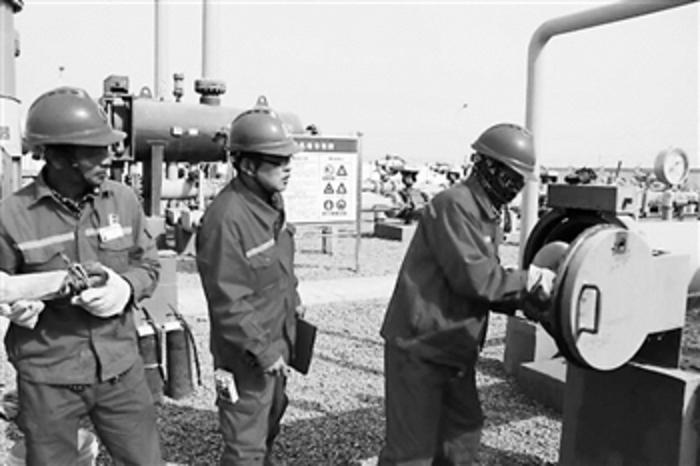 近日,中石化西北油田油气运销部塔河集气总站至拉依苏门站67公里天然气管线运行状态下顺利实现清管作业,促进了天然气管网安全、高效、平稳运行,同时也提高了天然气气质。为确保作业顺利,清管前油气运销部从安全、环保、技术保障等方面进行了精心准备。图为清管作业人员正在把清管器往发球筒内安放。王伟林 刘成刚摄