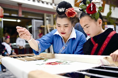 当日,贵州黔东南苗族侗族自治州台江县举办“妈妈制造”非遗手工技艺比赛,比赛以银饰、刺绣、扎染等现场创意手工为主要竞赛内容,200余人同场竞技。 新华社发(刘开福 摄)