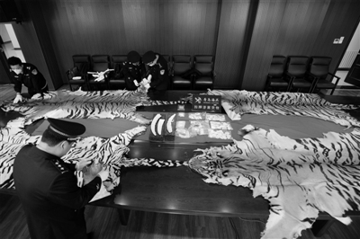 4月18日,青岛海关发布消息:4月2日,根据海关总署统一部署,青岛海关会同南宁海关、日照森林公安,在地方公安机关的配合下,多地同步出击,组织开展“青岛利剑1905”打击象牙走私集中收网行动。截至目前,共抓获犯罪嫌疑人15名,现场查获象牙制品21.6千克、虎皮4张、犀牛角1.83千克、虎骨10.9千克、熊胆9个、虎牙8枚、穿山甲鳞片24.73千克、玳瑁标本1只,成功打掉一个跨境走私象牙等濒危物种团伙。张进刚 范昌辉 摄/东方IC