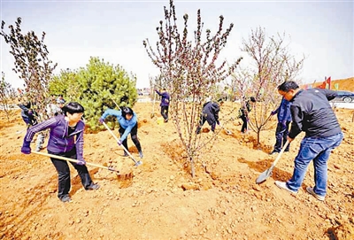 4月21日,唐山市丰润区的机关干部、部分企业职工及乡镇志愿者在王官营镇马头山废弃矿山修复工程工地进行植树。