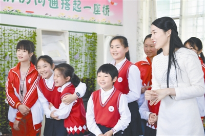 4月18日,谭湘丽带领学生做心理测试游戏。