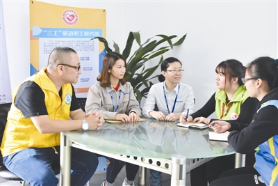 “三工”联动职工服务站工作人员深入企业了解职工需求并将工会服务带给职工
