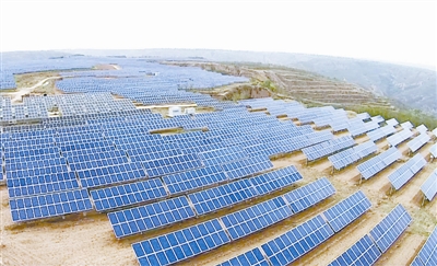 一排排蓝色的太阳能光伏板形成的“海洋”,为人类提供了充沛的清洁电力能源。郑兵 摄/东方IC