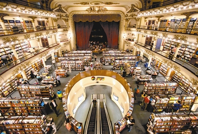 这是在阿根廷布宜诺斯艾利斯拍摄的雅典人书店(2019年1月8日摄)。