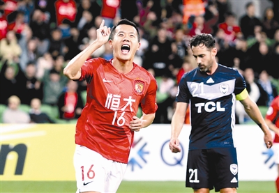 广州恒大队球员黄博文庆祝进球。 新华社记者 白雪飞 摄