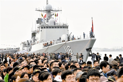 23日,中国人民解放军海军成立70周年多国海军活动在青岛及附近海空域举行,60余国海军代表团和10余国舰艇应邀前来。连日来,海军节引发民间热,参观的游人往来如织。 新华社记者 郭绪雷 摄