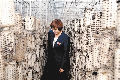 李二国在食用菌大棚查看黑木耳种植出耳情况。