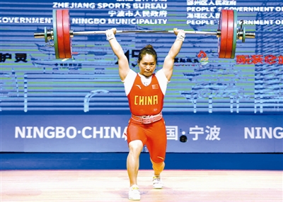 当日,在浙江宁波举办的2019年亚洲举重锦标赛女子64公斤级比赛中,中国选手邓薇以抓举115公斤、挺举142公斤、总成绩257公斤夺得冠军,并打破该级别抓举、挺举和总成绩三项世界纪录。新华社记者 贺长山 摄