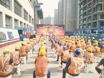 4月22日,在位于重庆开州区温泉镇江里河畔的黄家梁隧道工地,中交一公局五公司城开高速C1标项目部“促进度、创产值、建功新时代,大干100天”劳动竞赛动员现场:“我宣誓:在巍巍青山下,在浩浩江河畔,我们重任在肩,我们使命在前……”参建者一声声铿锵有力的宣誓响彻山谷。彩旗飘扬,鲜花绽放,整齐的方队,震耳的誓言,使整个会场隆重而热烈。