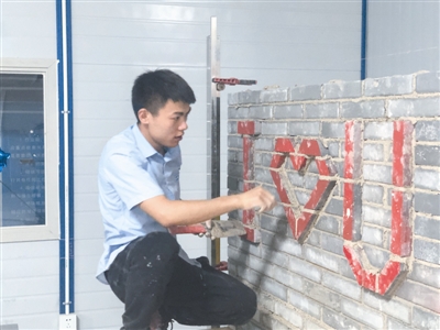 劳动节前夕,世界技能大赛优胜奖获得者邹彬在长沙建筑工程学校的实训基地砌了一面爱心墙向女友求婚。