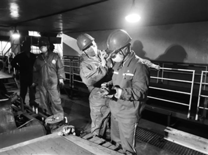 4月25日至5月1日是第17个《职业病防治法》宣传周,今年的主题是 “健康中国,职业健康同行”。4月26日,中国石油兰州石化维达公司维修一分公司动力钳工班员工在检修煤炭运送装置前认真做好安全防护工作。