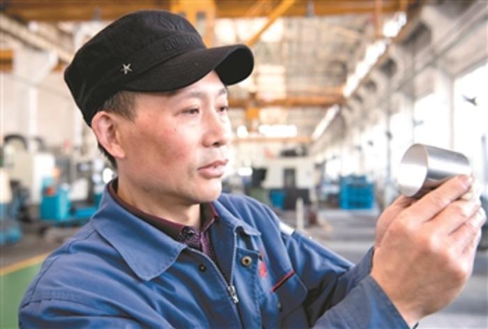 “五一”前,在中国兵器集团武汉重型机床集团公司车间厂房内,《工人日报》记者见到研磨钳工魏红权时,他正弯腰弓步,均匀研磨一个高精度的零件。
