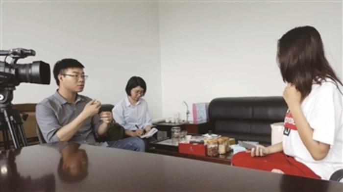 本报记者于灵歌(中)在咪咕动漫采访员工。