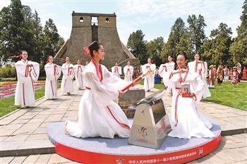 5月8日,采集使者在第十一届全国少数民族传统体育运动会火种采集仪式上采集火种。当日,第十一届全国少数民族传统体育运动会火种采集暨互联网火炬传递仪式在郑州登封观星台举行。
