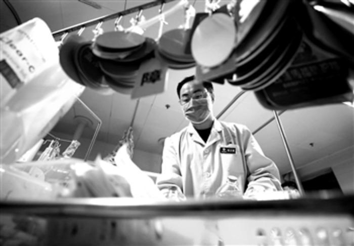 5月9日,湖南省衡阳市南华大学附属第一医院护士康石墙在ICU病房忙碌。