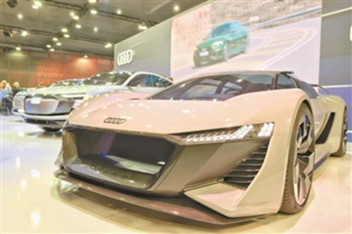 3月30日,在波兰波兹南,一辆奥迪PB18 e-tron电动汽车在车展上展出。