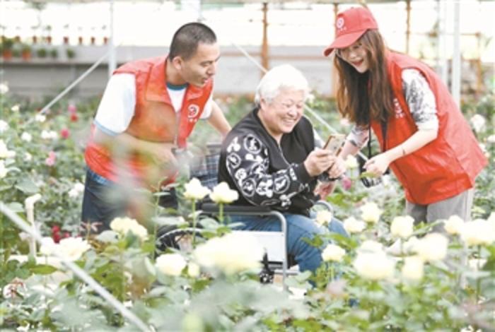 5月9日,安徽省合肥市常青街道金寨南路社区志愿者陪伴辖区老人来到牛角大圩四季花海赏花。 当日,常青街道举办“温馨五月 感恩母亲”主题活动,迎接母亲节的到来。