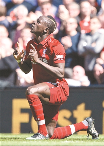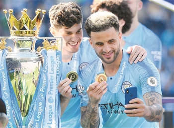 ①图为曼城队球员沃克(右)、斯通斯在颁奖仪式上自拍庆祝。 新华社/路透 ②图为利物浦队球员马内在进球后庆祝。 新华社发