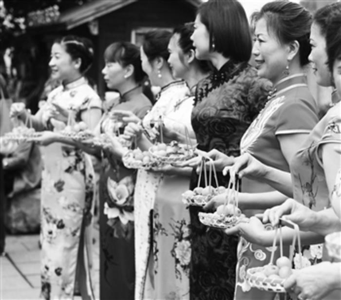 5月16日,在浙江省杭州市余杭区塘栖古镇,市民在民俗展演上推介当地丰收的枇杷。近年来,当地将大运河文化、美丽乡村、水乡风情、古镇文化等旅游资源整合,推出枇杷采摘民俗文化体验等乡村旅游项目,助力农民增收和乡村振兴。 新华社记者 徐昱 摄