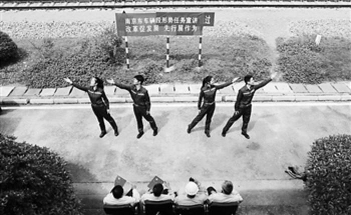 近期,中铁上海局南京东车辆段徐州下行运用车间杨屯作业场技交班副工长带着两名检车员驻守在徐州华润电力有限公司,负责货车检修工作。5月13日,他们迎来了一群特殊的客人——段形势任务宣讲小分队。宣讲小分队队员束沛说:“虽然观众只有几个人,但我们的宣讲一点没打折扣。” 缪华 摄
