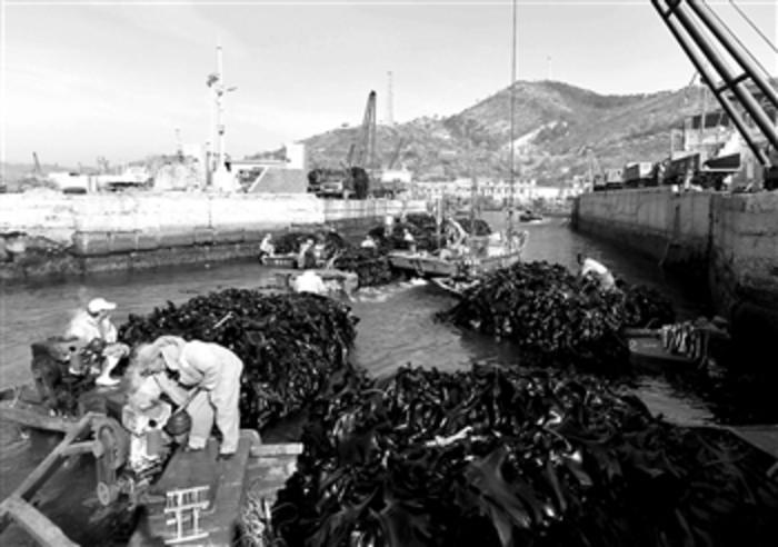 大钦岛乡位于山东省烟台市长岛县北部。每年5月至8月,该岛屿附近的1.3万亩海带进入收获期。海岛居民们每天驾驶小船驶向养殖区收割海带,诸多工序有条不紊,迎来忙碌的“夏收”季节。