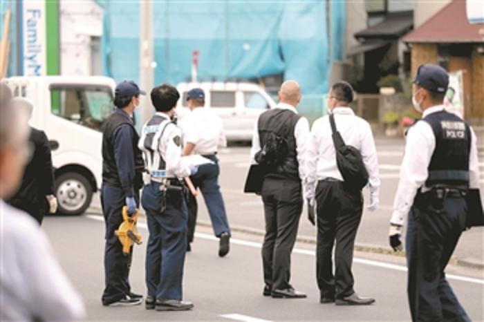 5月28日,在日本神奈川县川崎市,警方人员在案发现场调查。