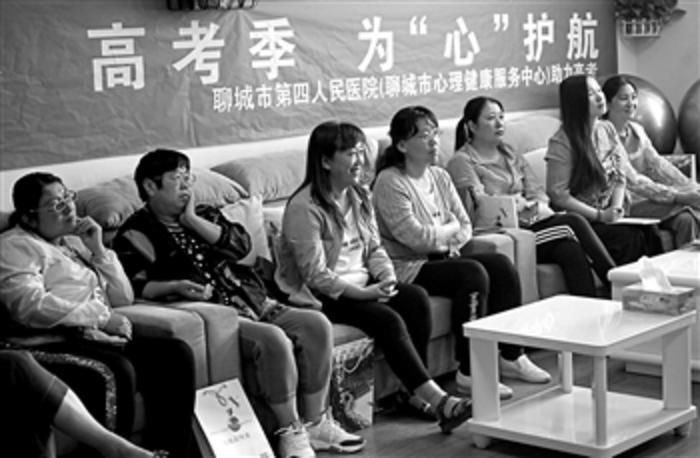 5月30日,在山东省聊城市心理健康服务中心举办的“家有考生”职工心理减压服务沙龙上,家长听心理咨询师讲亲子关系。