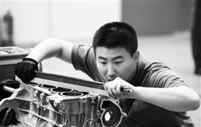 5月28日,重庆,“一带一路”国际技能大赛上一位中国选手正在专注地进行比赛。