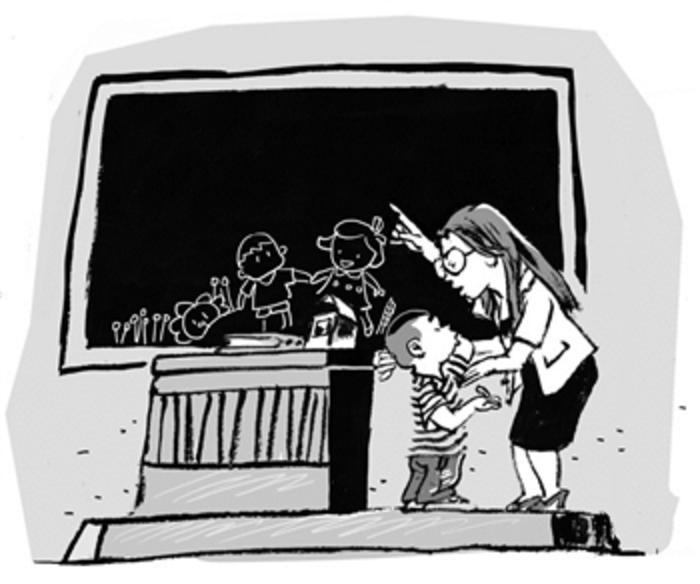 老师制止道:“别擦,这黑板上画了这几幅卡通画,变得多漂亮啊!”