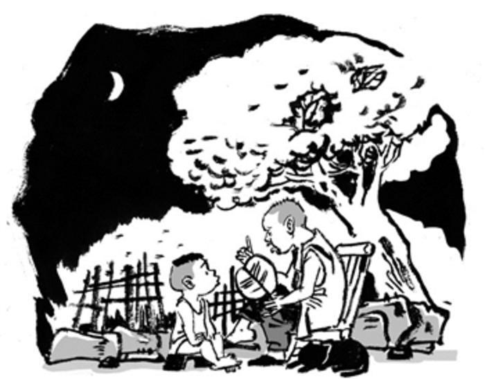 记得那时候爷爷最喜欢坐在一张竹椅上,拿着一把蒲扇,讲述着久远年代的故事。我和妹妹就在地上铺着凉席,眼睛一眨也不眨地看着月亮。在濛濛月色里,如痴如醉地想象爷爷说的那种场景,时不时响起的蛙声像是美妙的伴奏,扑闪扑闪地发着光的萤火虫则是伴舞。这种醉人心怀的场景最容易引人入梦,我们经常会在凉爽的夜色中沉沉地睡去。
