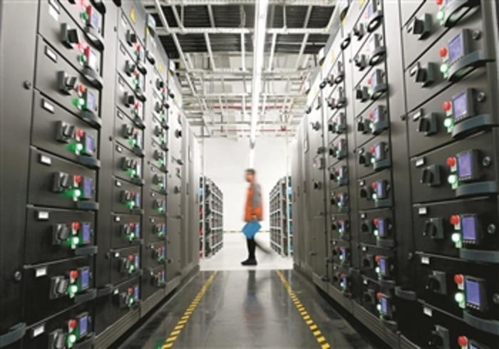 工作人员在宁夏中卫市西部云基地中国移动宁夏数据中心对设备进行检查维护(5月31日摄)。