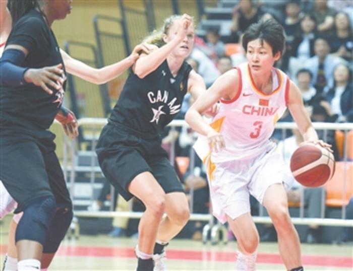 6月2日,在江苏海安举行的2019年国际女篮对抗赛中,中国队以92比85战胜加美明星队。图为中国队球员杨力维(右)在比赛中控球。 新华社记者 季春鹏 摄