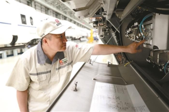 罗昭强从“学徒”重新做起,49道调试工序,他一道道跟、一点点学,手机、平板电脑里存满图纸,每天早晚坐班车都在研究。经过半年疯狂“充电”,他迅速在新岗位上完成了“凤凰涅槃”,并以数十项调试方法的创新,为首批“复兴号”准时开通、达速运营扫清了障碍。