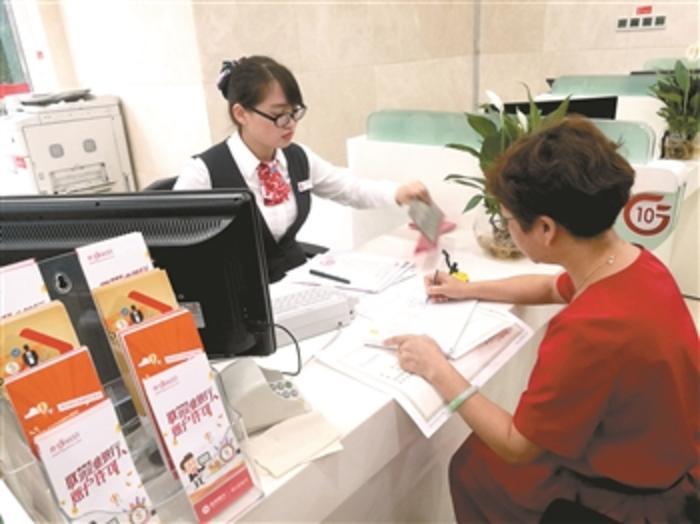 6月10日,贵州正式取消企业银行账户行政许可。图为当天贵州某房产经纪公司负责人冯万琴(右)在贵州银行宝山支行服务窗口办理企业开户业务。
